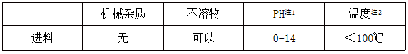 注 1:陶瓷膜本身耐酸碱性能很高;受限于试验设备的材质为 316L 型不锈钢,进料中氯离子含量不宜太高,以免对设备、膜芯造成腐蚀、损坏。